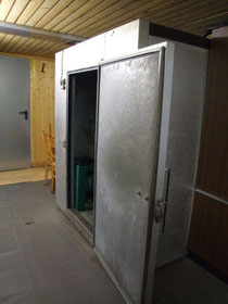 Im Nebenraum nimmt das Kühlhaus viel Platz ein.